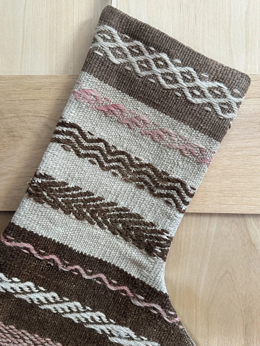 Light Blue and Beige Geometric Turkish Christmas Stocking