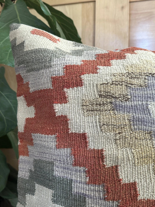 Blue and Brown Geometric Turkish Kilim Throw Pillow, 20 x 20