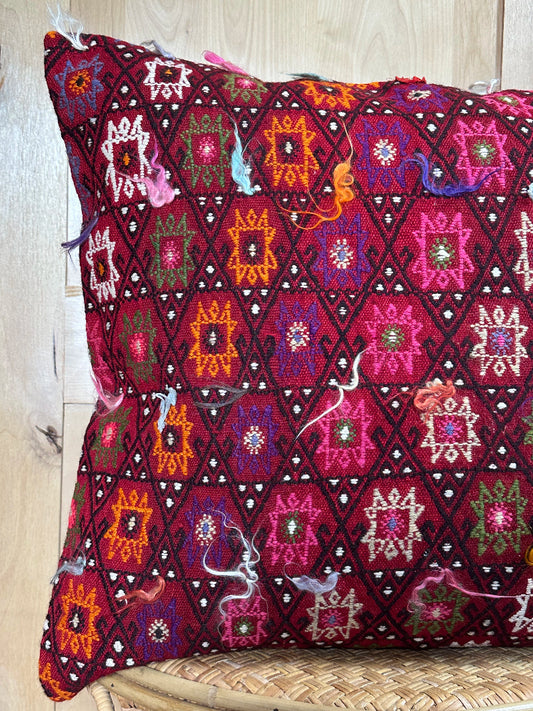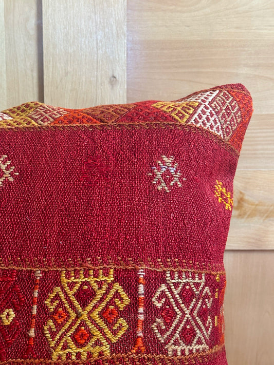 Red Embroidered Turkish Kilim Throw Pillow 20 x 20
