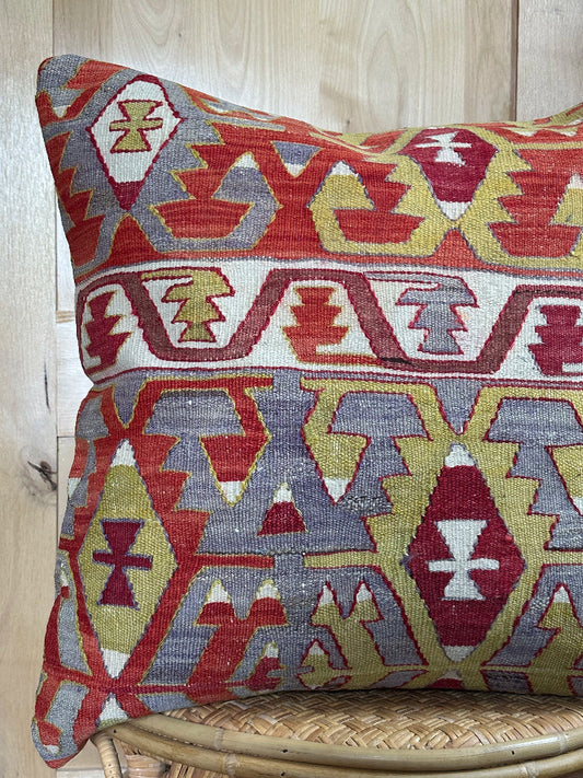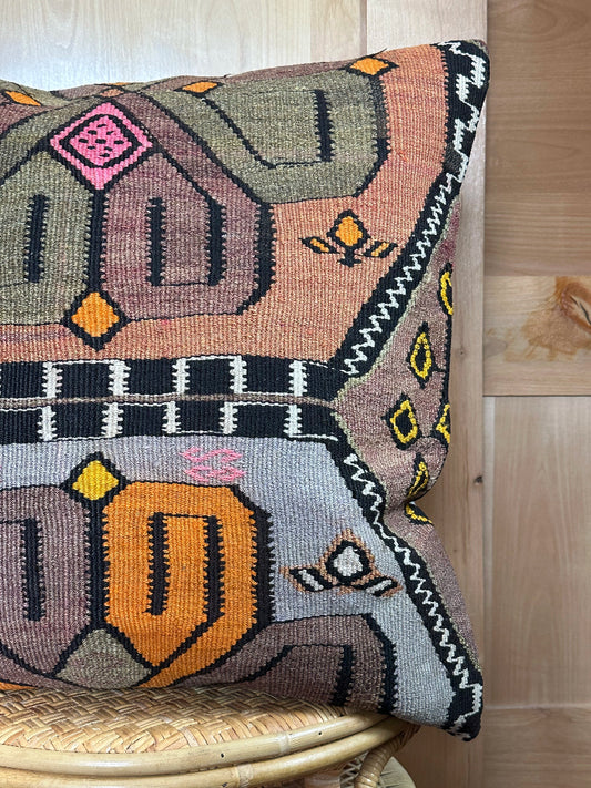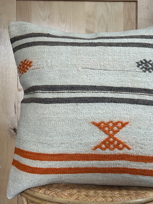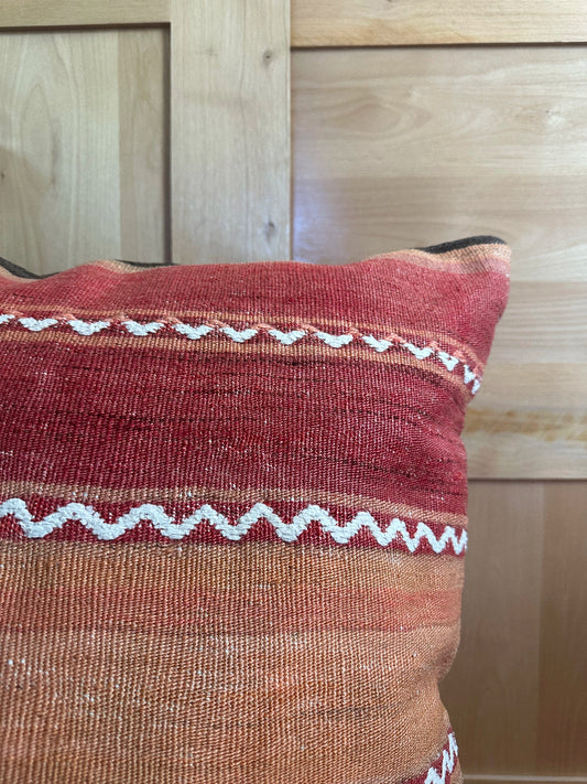 Sunset Sherbet Linear Turkish Kilim Throw Pillow, 26 x 26
