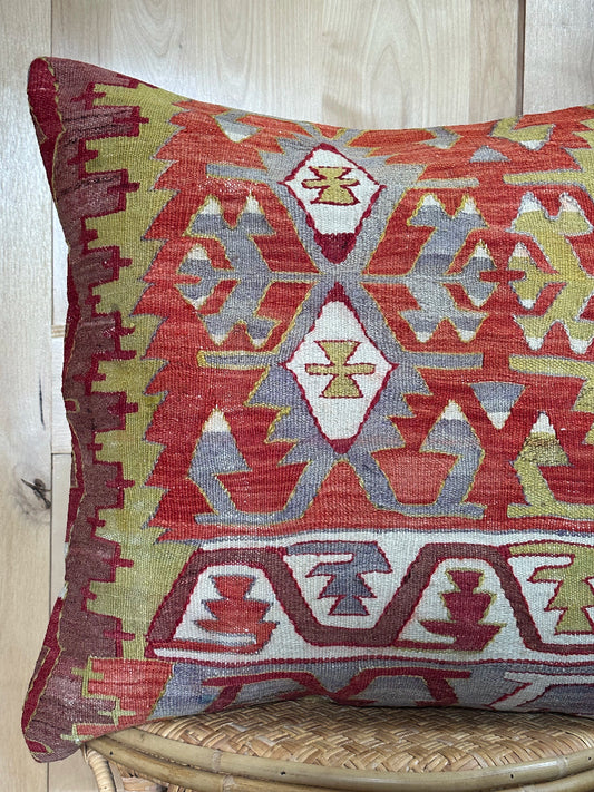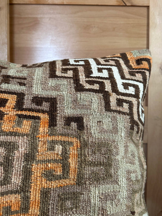 Green and Orange Geometric Turkish Kilim Throw Pillow, 20 x 20
