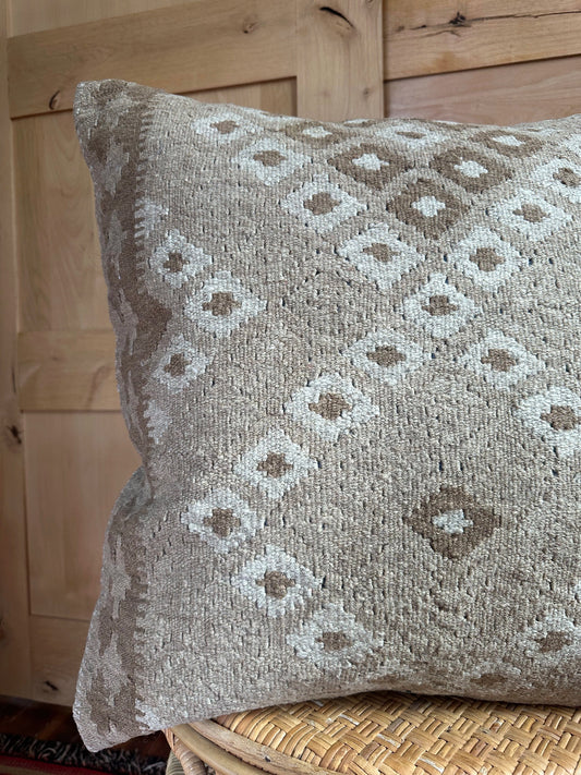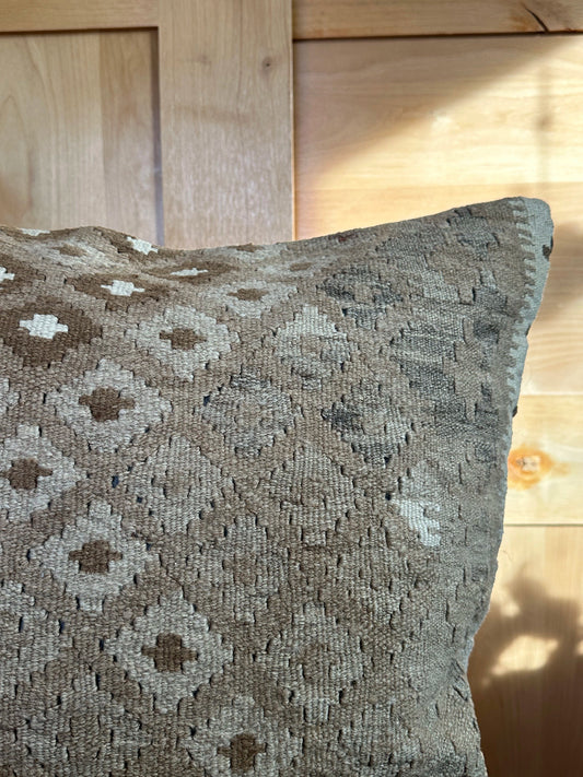 Brown and Taupe Diamond Turkish Kilim Throw Pillow #2, 26 x 26