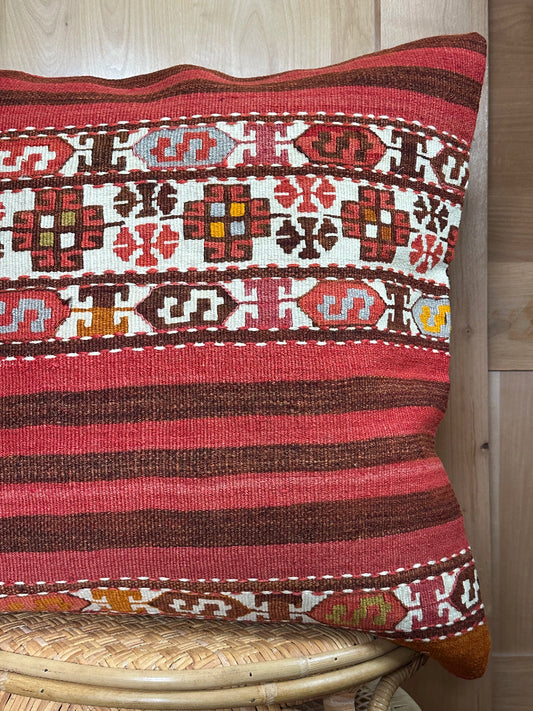 Red and Floral Striped Turkish Kilim Throw Pillow #1, 26 x 26