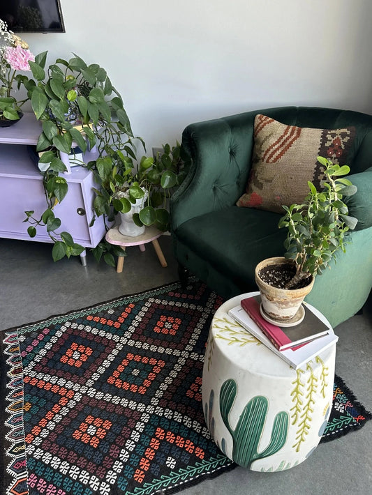 At High Pile Designs, we have a wide selection of Turkish rugs for you to choose from. Small-sized Turkish rugs, medium-sized Turkish rugs, large-sized Turkish rugs and even Turkish runners! Whatever sized space you have, we’ll have a Turkish rug that fits your needs. Each rug is handmade and ranges from 15 to 90 years old. Whether you’re looking for something playful and colorful, or more muted and vintage-looking, you’ll find it at High Pile Designs. In addition to different sizing options, we have different types of Turkish rugs too - Turkish Kilim, Turkish Cicim and Turkish Pile. All of our rugs are great for high-traffic areas, pets and families. Made with natural fibers, these handmade rugs are easy to clean and care for no matter what your home life looks like. Make sure to shop High Pile Designs for your vintage rug needs and bring the magic of Turkey back into your home. We’re always getting new pieces, so if you don’t see something that speaks to you currently, make sure to send us a message