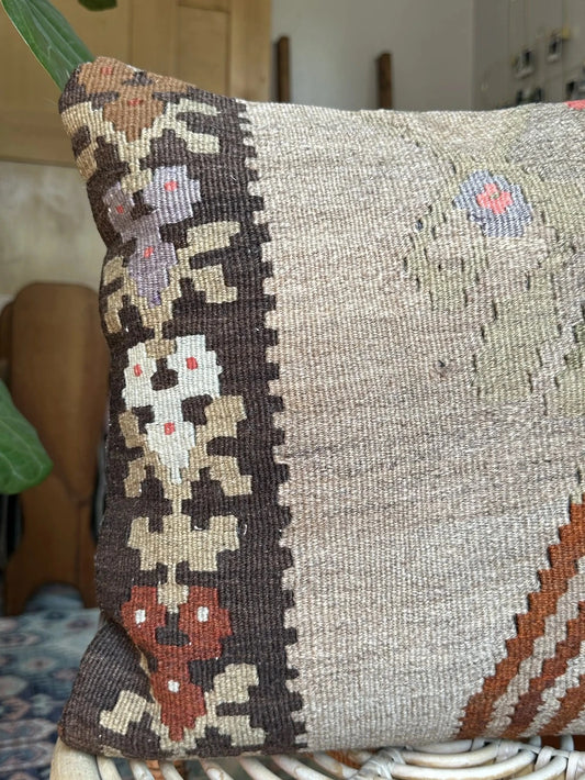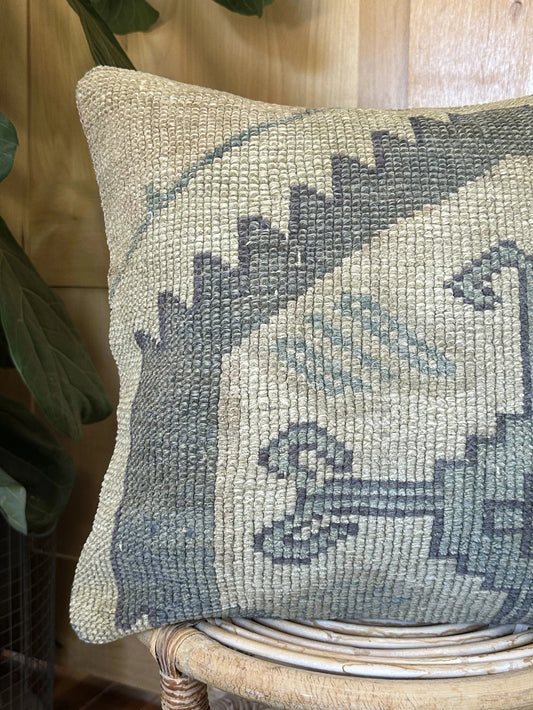 20 x 20 Neutral Turkish Kilim Throw Pillow, P-0170