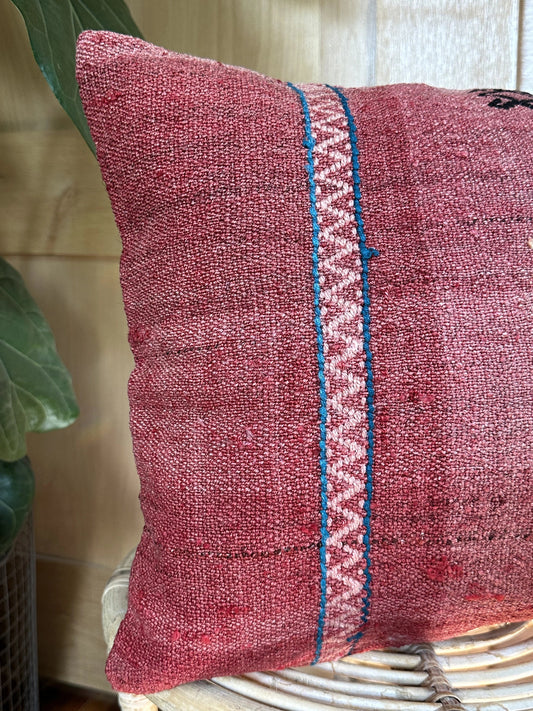 Red Embroidered Turkish Kilim Throw Pillow, 16 x 16