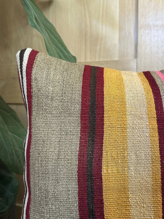 Red and Brown Striped Turkish Kilim Lumbar Pillow, 16 x 24