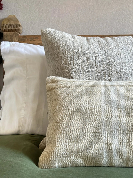 White Hemp Grass Turkish Lumbar Pillow #2, 12 x 36
