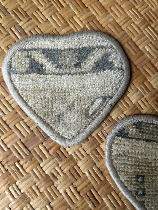 Heart-Shaped Turkish Rug Coaster Set - Blue + Beige Accent