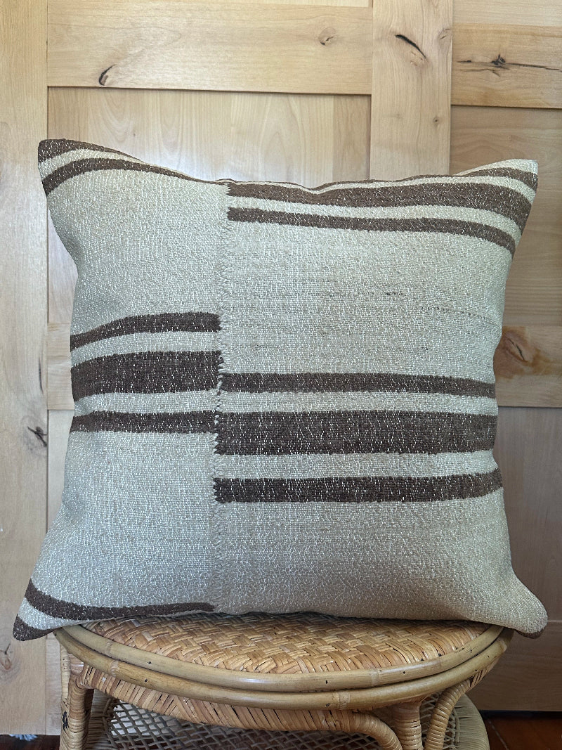 Neutral Patchwork Kilim Throw Pillow #1, 24 x 24